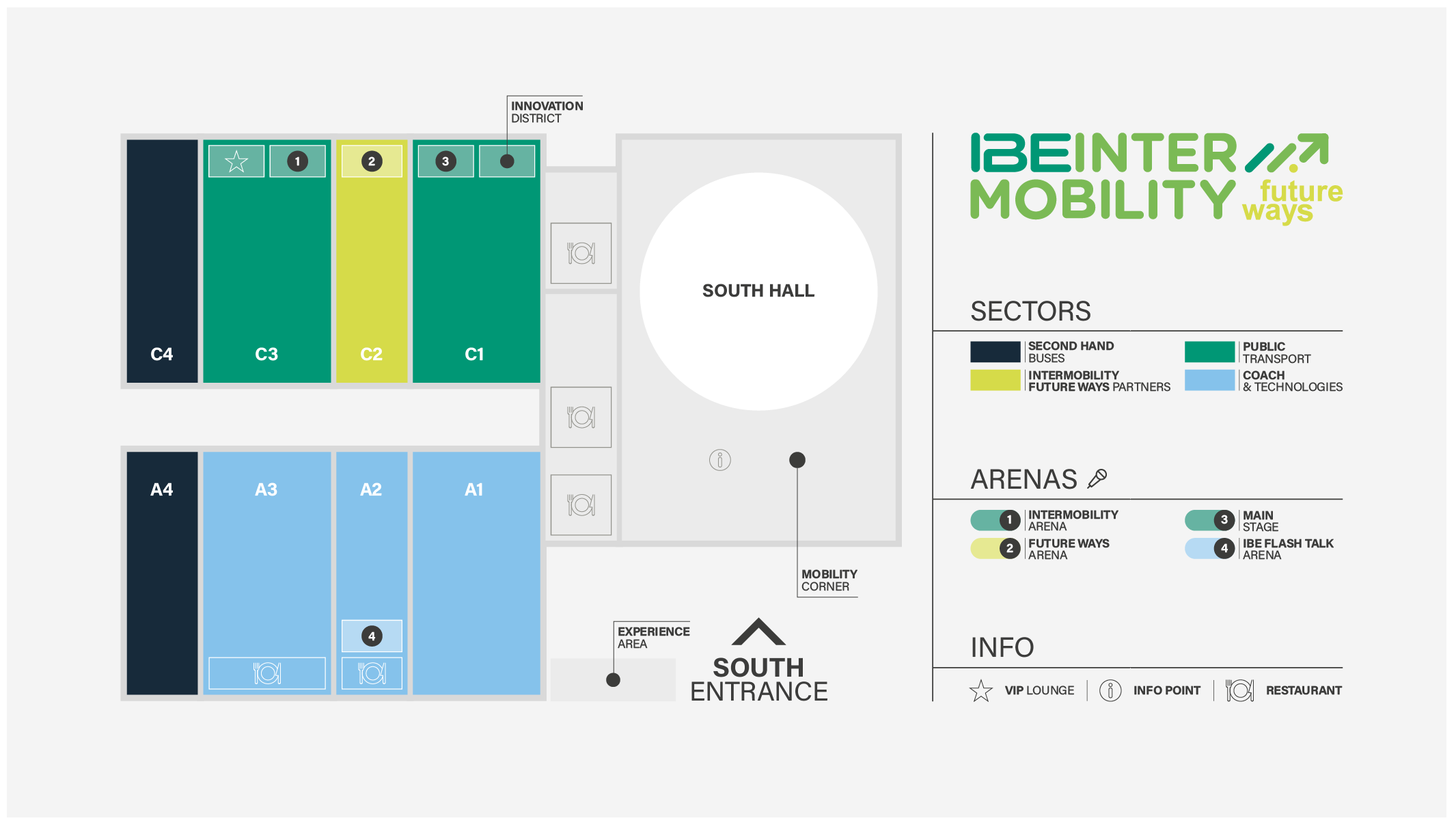 Con ingresso principale nella Hall Sud, IBE Intermobility Future Ways sarà articolato su oltre 4 padiglioni di superficie espositiva dedicati: